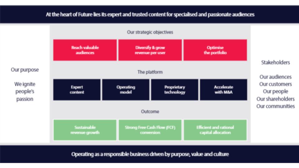 Future is a global platform for intent-led specialist media underpinned by proprietary technology and enabled by data, with diversified revenue streams. Our leadership position is delivered by strong, consistent organic growth and accelerated through acquisitions.